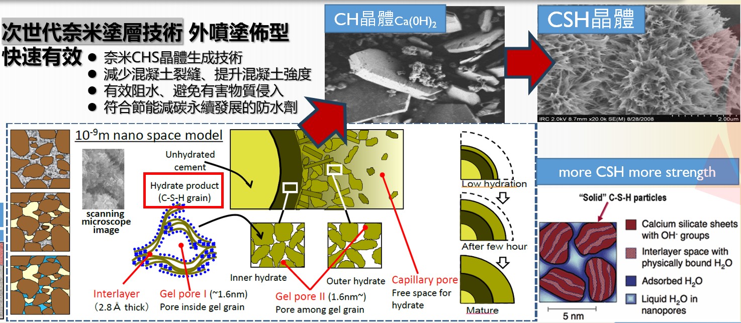 - 奈米液態技術:可與混凝土相容的次世代奈米塗層尖端科技。