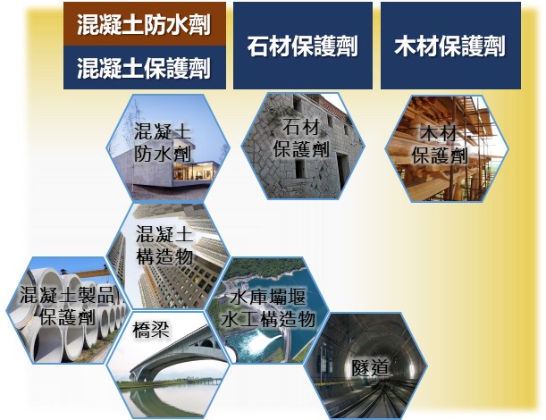 - 可用於混凝土、石材及木材..等作為保護劑。