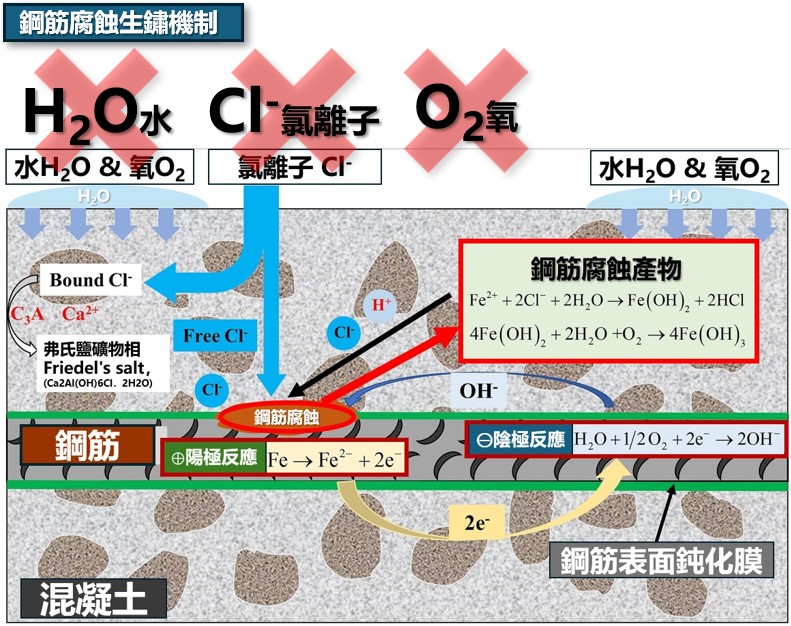 於水工結構物中防止鋼筋腐蝕的各類水中及臨海結構設施。