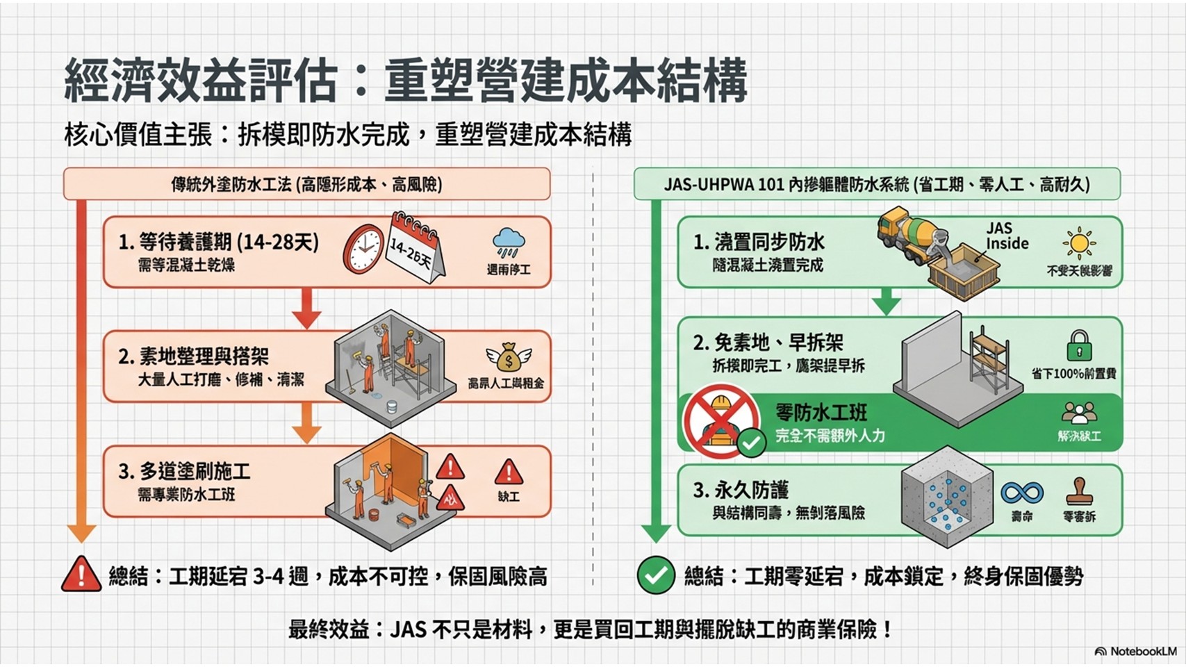 JAS-UHPWA 101 所代表的,是一種以耐久設計(Durability-driven design)為核心的材料思維。防水不再是附加工程,而是結構本身的設計條件。
